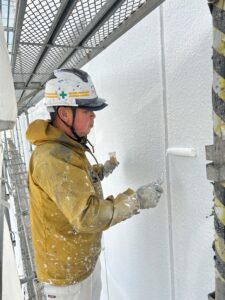 今日は、午前中に急遽、某会社様の寮に行ってお風呂場の防水を仕上げてました!無事に終わり、午後からみんなと合流して、外壁下塗り!流石に規模が大きくて半日じゃ全部終わらなかった😱半日目標で半分くらい塗り終わればって話をしたんですが、7.8割くらい終われたのでとりあえずは良き♪明日残りの下塗りをして、今日下塗りできた部分を中塗りします💪なかなか大変ですが、気合を入れて頑張っていきます!